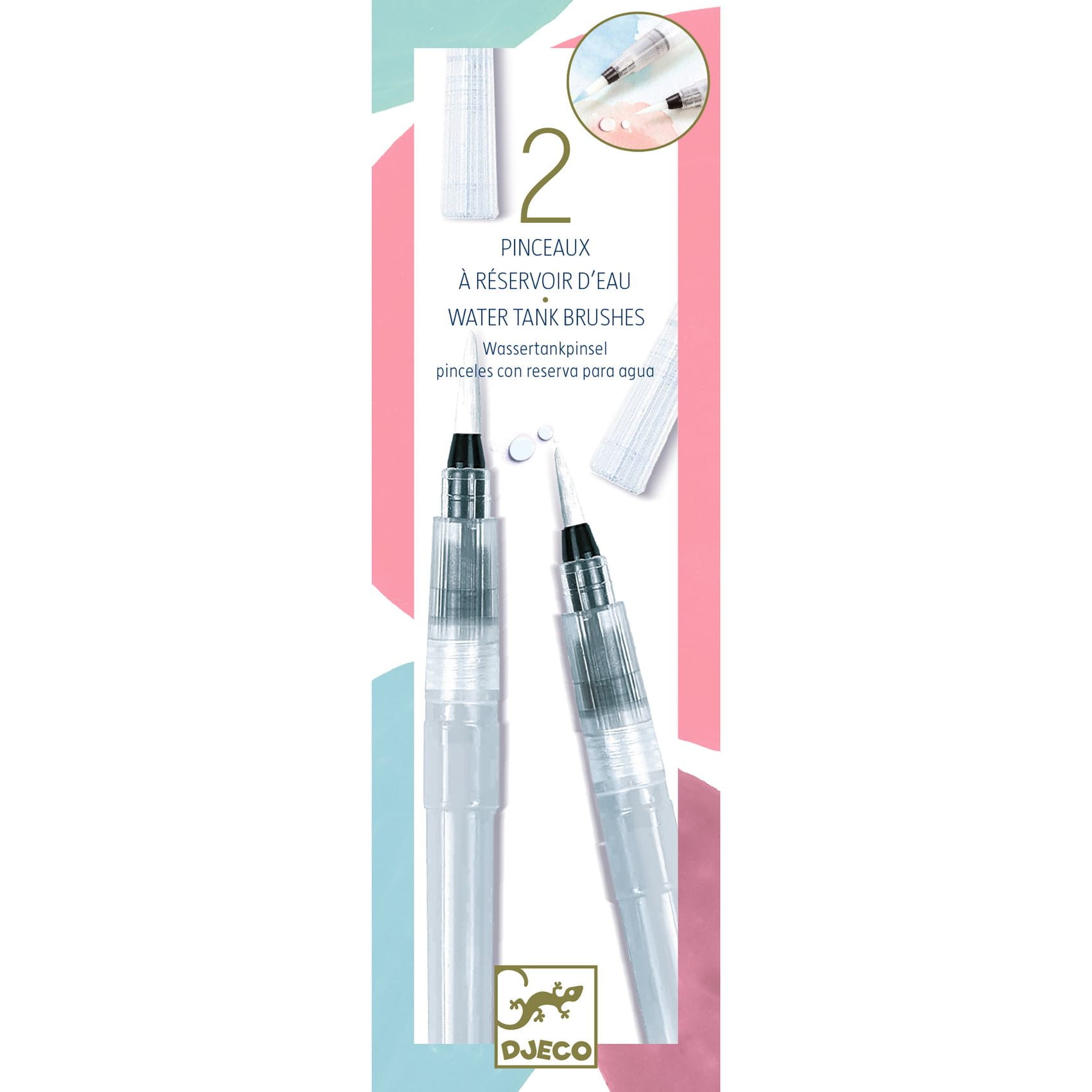 Zestaw 2 pędzelków ze zbiorniczkami na wodę. Niezbędny gadżet dla początkujących malarzy. Dzięki zbiorniczkowi rozprowadzanie kolorów nigdy nie było łatwiejsze. Za każdym pociągnięciem na kartce z farbą znajdzie się odpowiednia ilość wody. Pędzelki można przechowywać w załączonym pudełku. 2 różne końcówki.