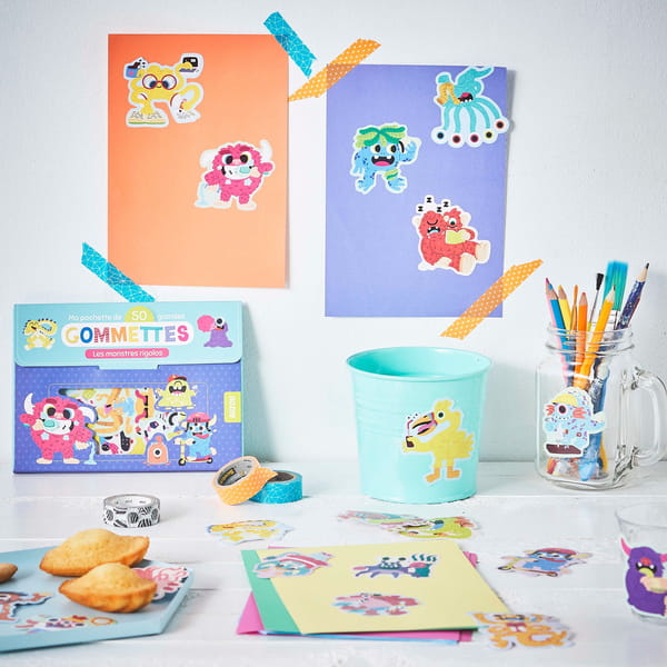 Zestaw naklejek Zabawne potwory to aż 50 dużych naklejek z motywem potworów. Kolorowe zabawne ilustracje zagwarantują świetną zabawę każdemu dziecku. Można używać ich do ozdobienia swoich projektów artystycznych lub tworzenia historii z ich udziałem. Dzięki dużemu rozmiarowi korzystanie z nich będzie przyjemnością, są dostosowane do małych rączek. Który z potworów jest najśmieszniejszy?