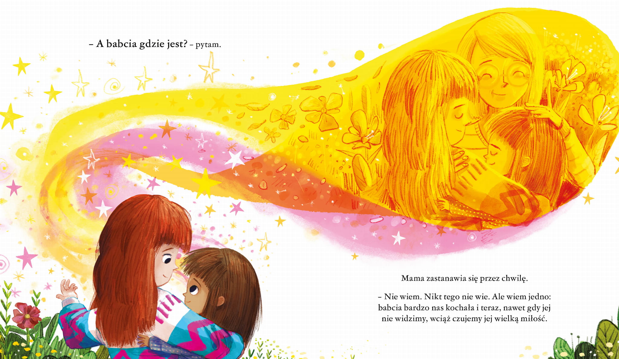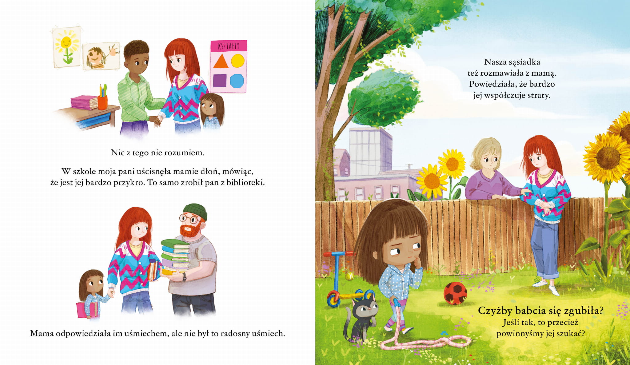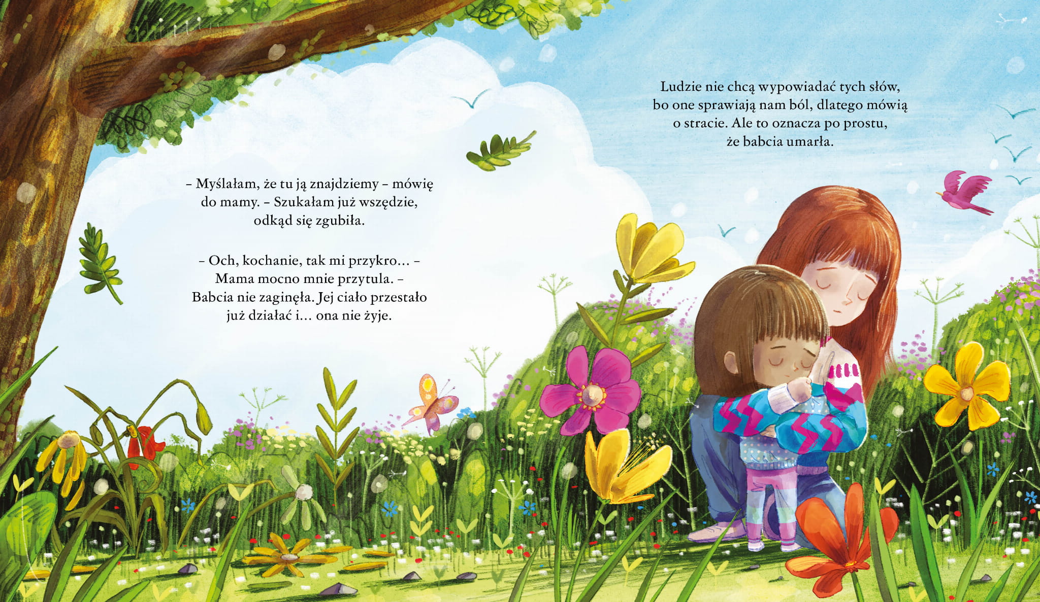 Kiedy babci pewnej dziewczynki nigdzie nie widać, a wszyscy powtarzają, jak bardzo im przykro, mała wnuczka nie rozumie, co to oznacza. Dlaczego tak nagle zniknęła? Dlaczego już do niej nie przychodzi?