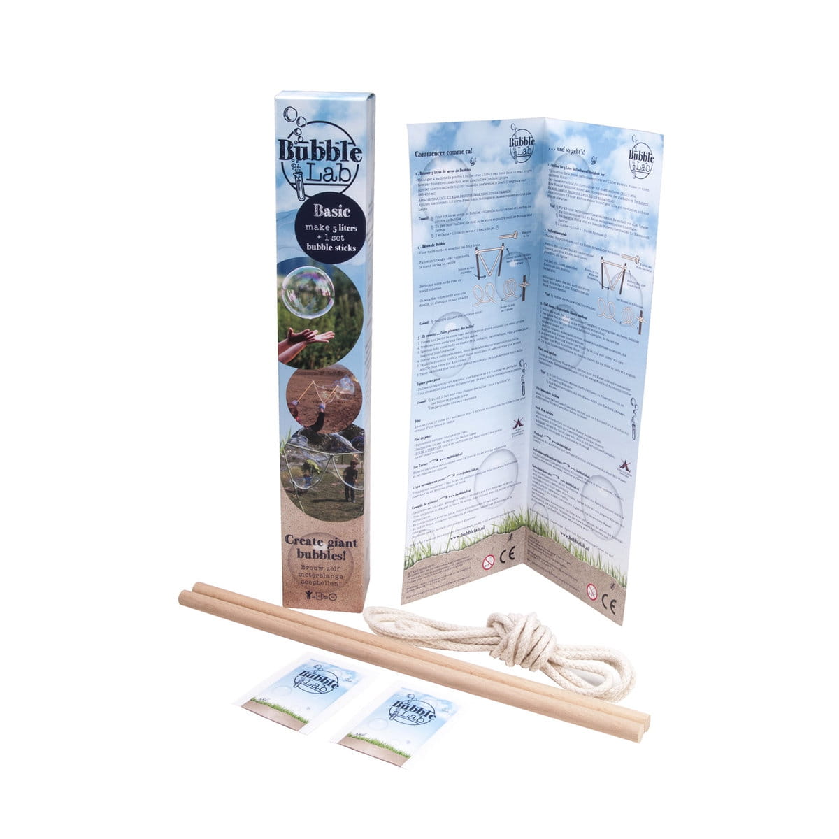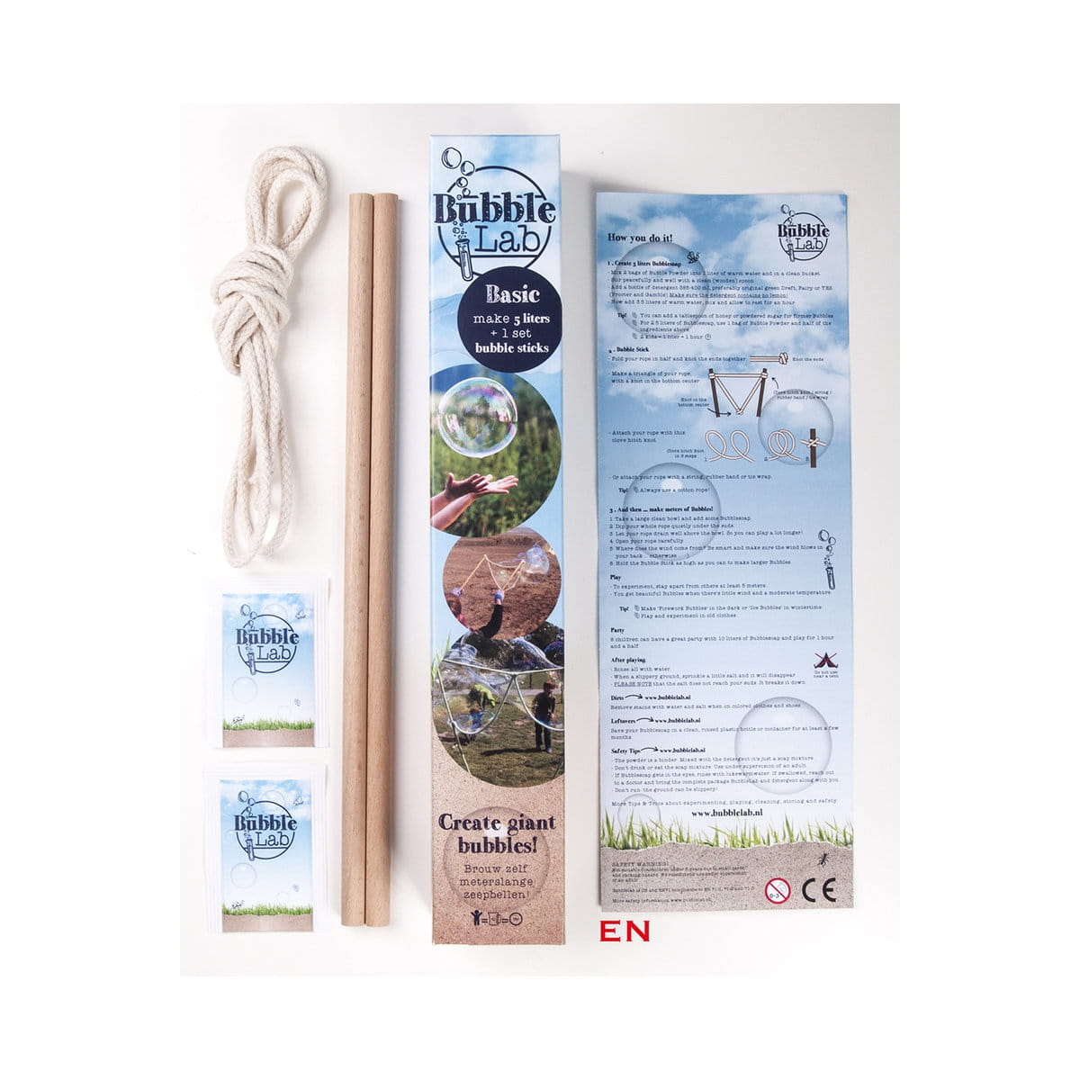 - w zestawie znajduje się: 2 probówki BubbleSoap, bawełniana lina, dwa kijki