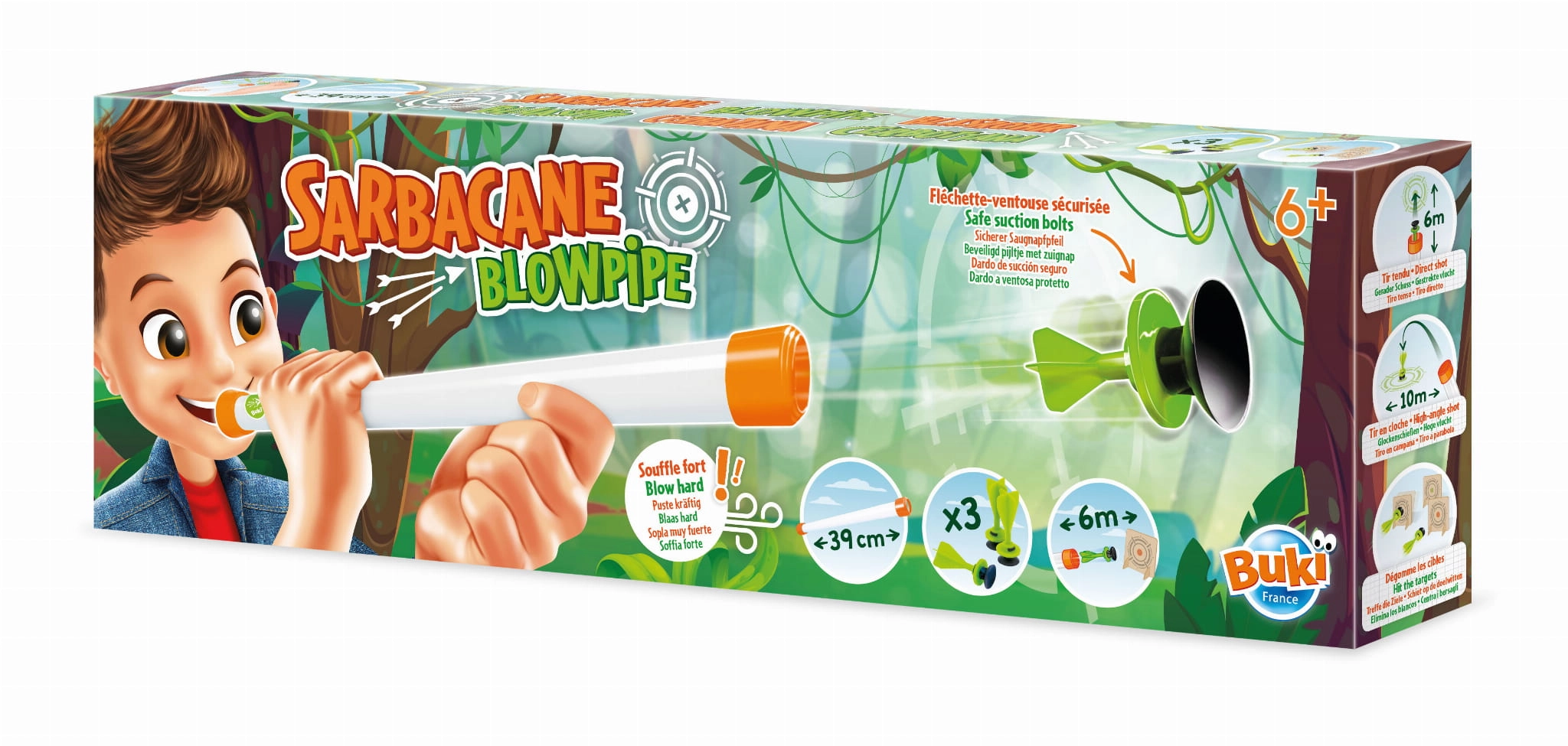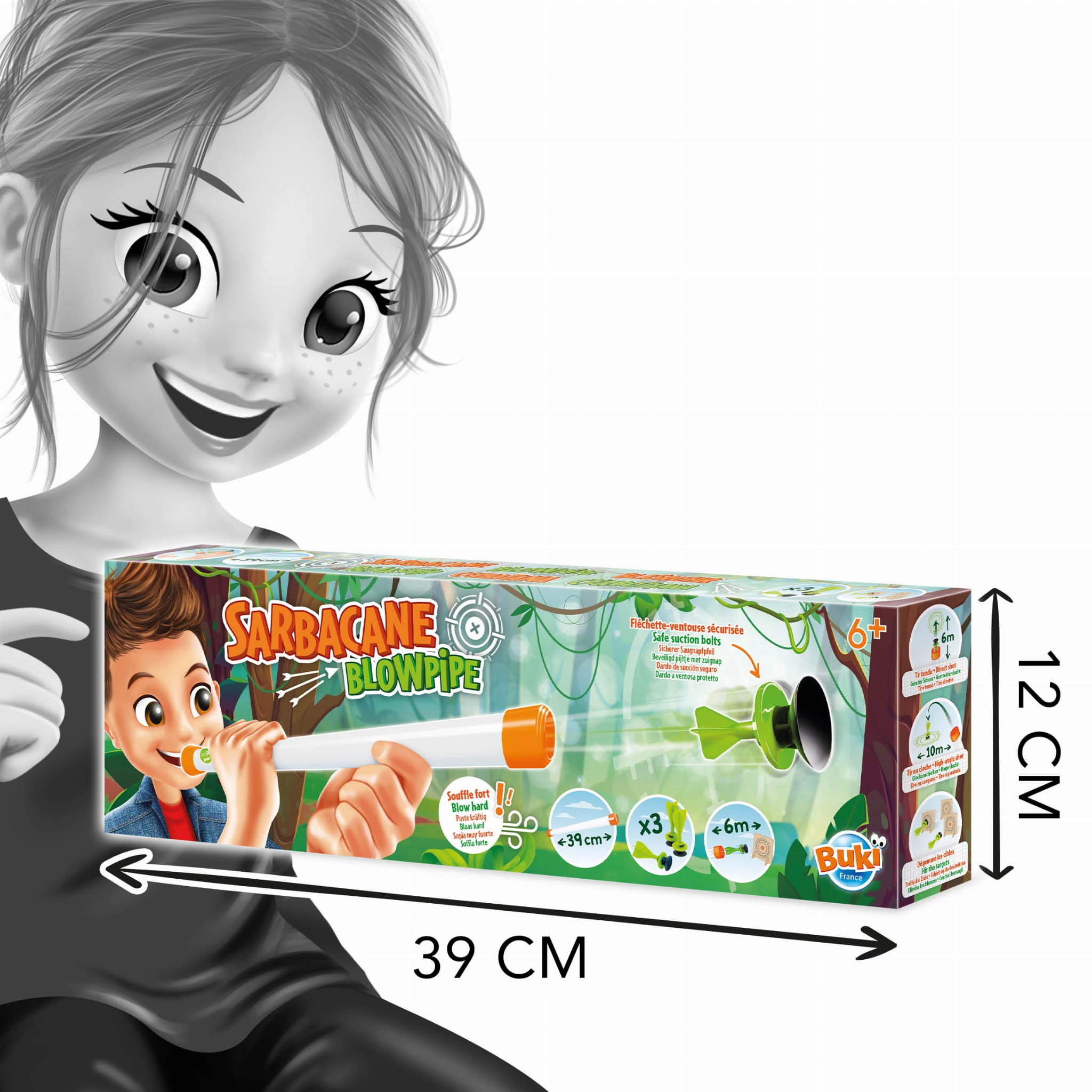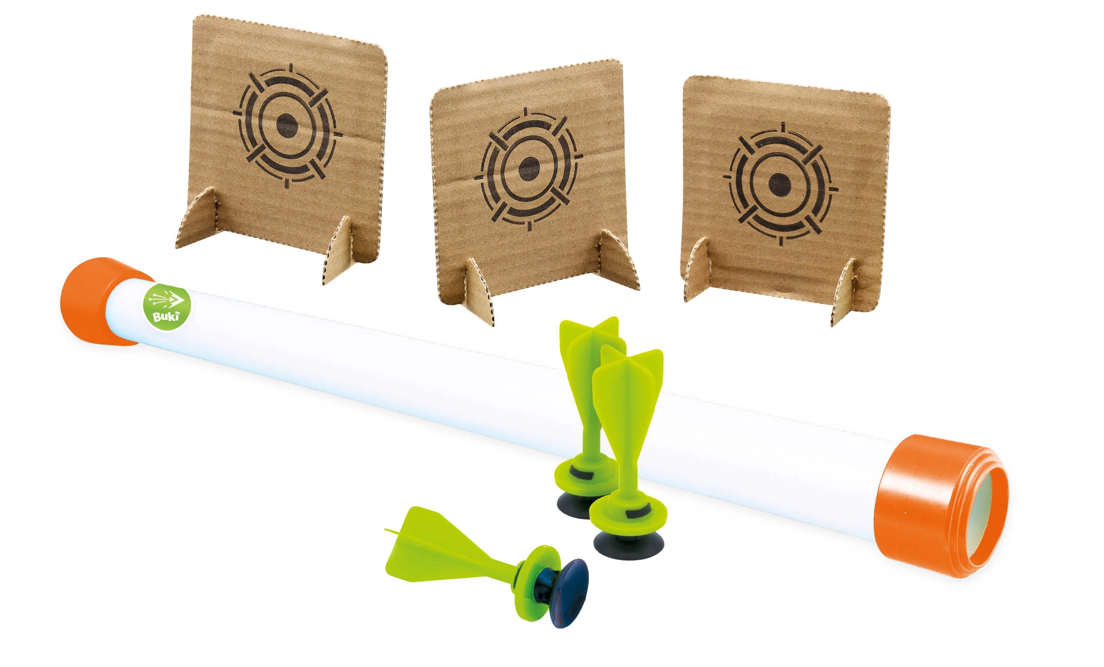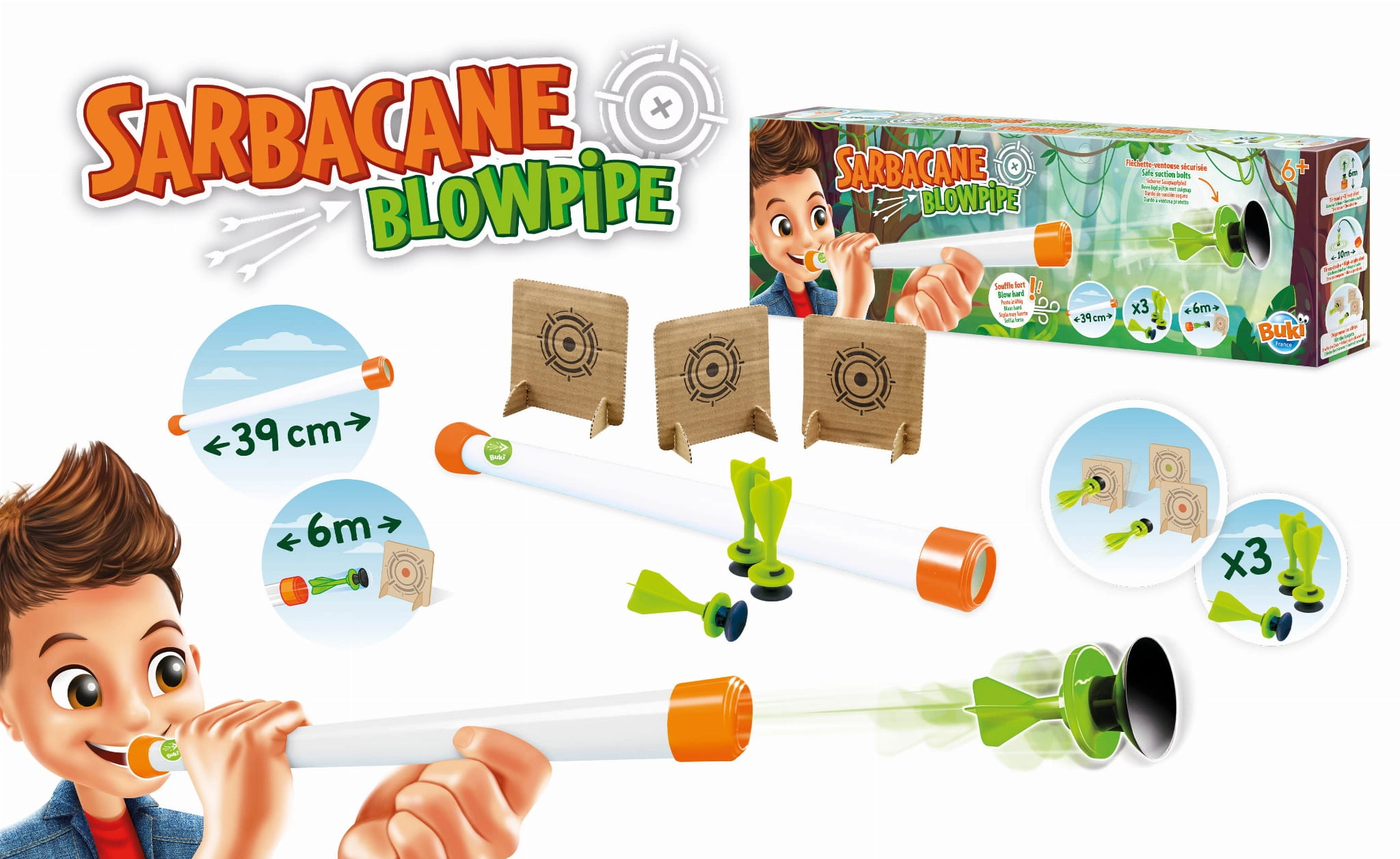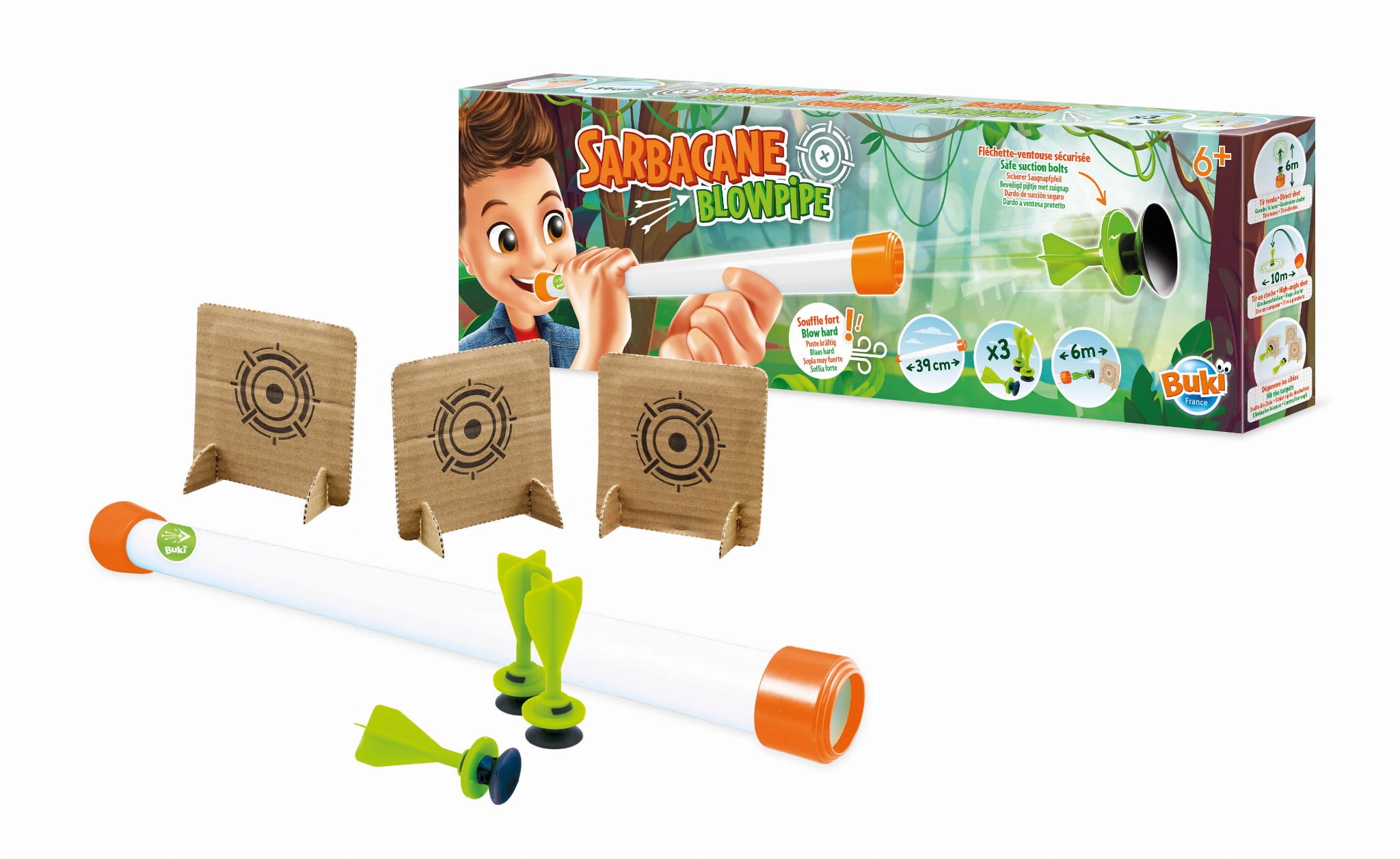 Dmuchawka na przyssawki to zabawka idealna na ciepłe letnie dni. Umieść lotkę przyssawkę w dmuchawce i mocno dmuchnij w ustnik, próbując trafić do celu! Zabawka oraz przyssawki są zaprojektowane w sposób zapewniający bezpieczne użytkowanie.