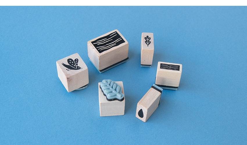 - 6 drewnianych stempli,