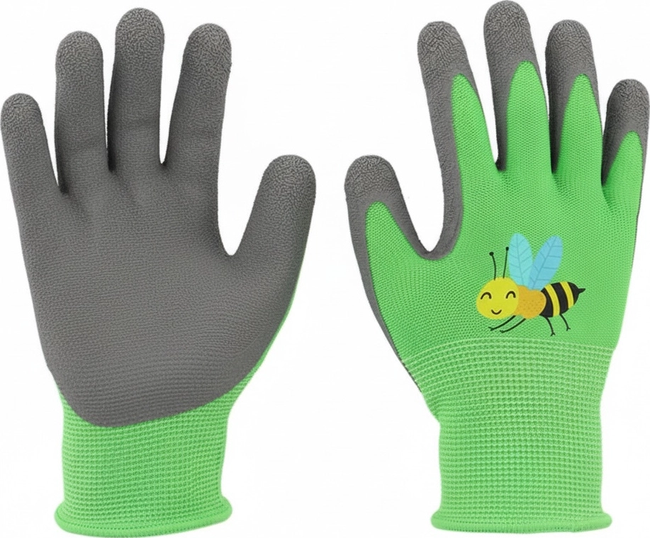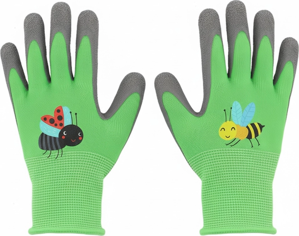 Te rękawiczki z wesołym nadrukiem owadów sprawiają, że prace w ogrodzie stają się jeszcze przyjemniejsze. Dzięki elastycznym mankietom małe rączki pozostają suche i czyste, a lateksowa powłoka na dłoniach poprawia przyczepność, co ułatwia trzymanie narzędzi i akcesoriów ogrodowych. To idealny sposób, by zachęcić dziecko do aktywności na świeżym powietrzu i wspólnej zabawy w ogrodzie.