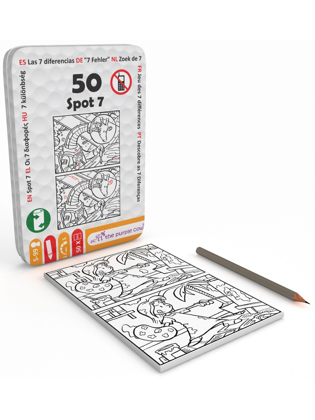Podróżne łamigłówki Znajdź siedem różnic to aż 50 stron zagadek dla najmłodszych o rosnącym stopniu trudności. Zabawa polega na znalezieniu 7 różnic między dwoma bardzo podobnymi obrazkami. Zabawa rozwija spostrzegawczość oraz koncentrację. Świetnie sprawdzą się w samochodzie, samolocie, restauracji, w domu gdy pada deszcz :) Mały rozmiar sprawia, że możemy zabrać je ze sobą wszędzie.
