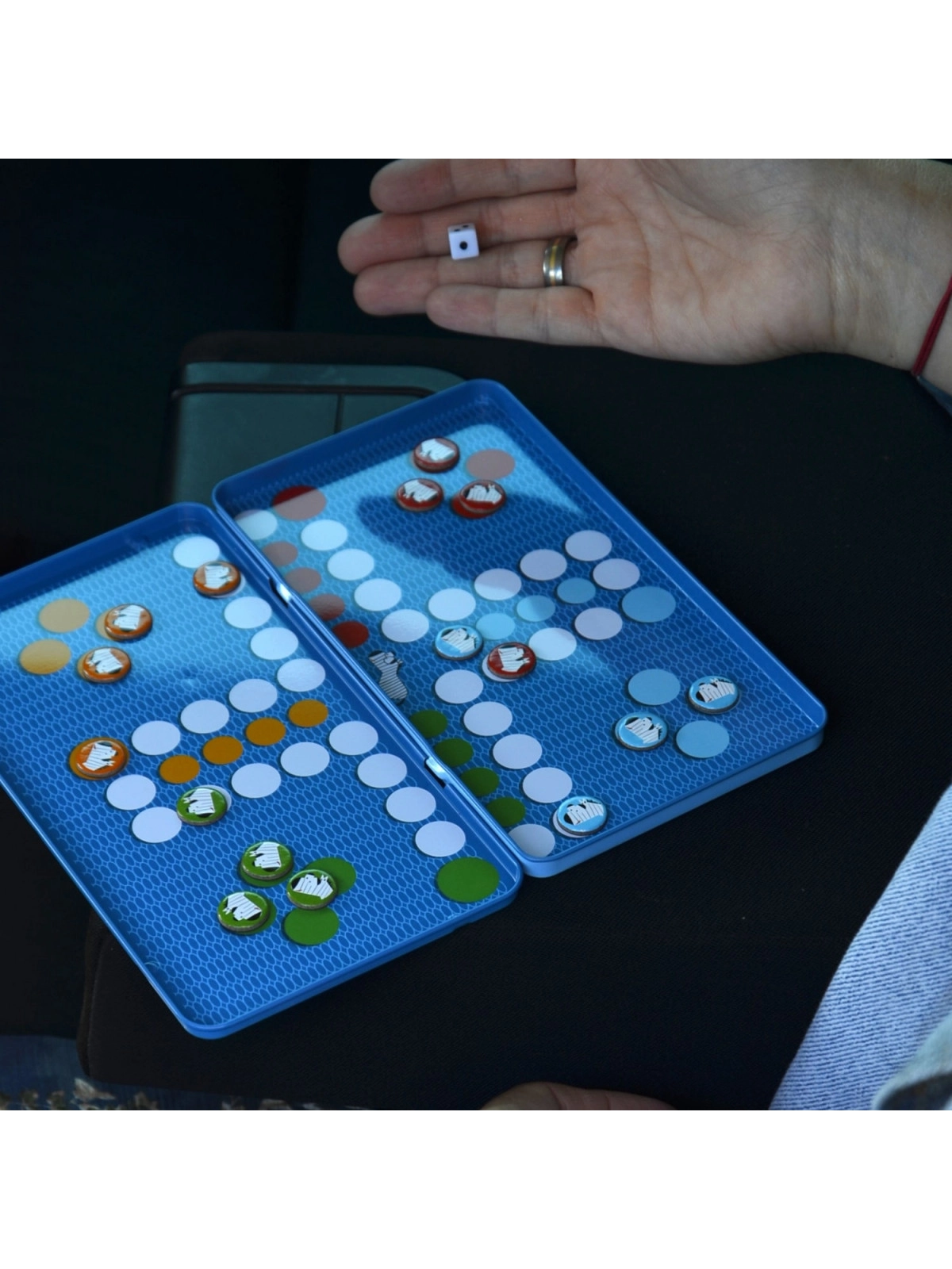 - w zestawie znajduje się 16 magnetycznych pionków (po 4 pionki w 4 różnych kolorach) i 1 kostka do gry;