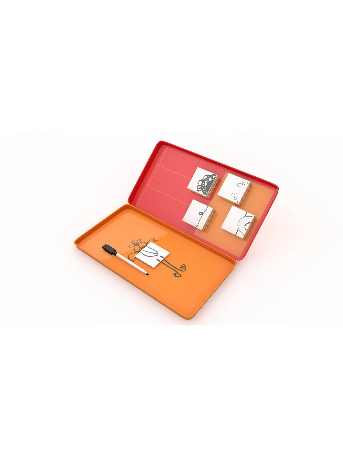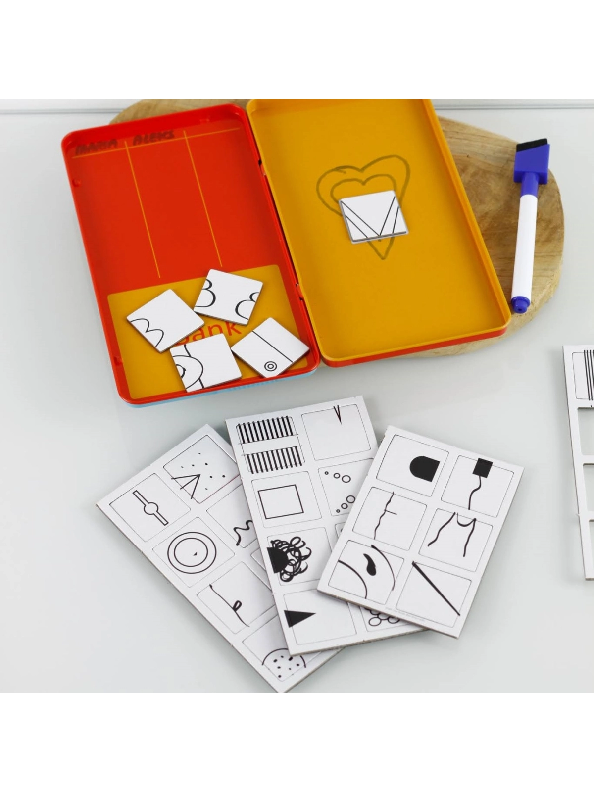Zasady gry: Magnesy kładziemy odwrócone na planszy w miejscu "Bank". Na górze, w tabelce wpisujemy dołączonym mazakiem imiona graczy i wybieramy rozpoczynającego rozgrywkę. Gracz losuje magnes i kładzie go na środku prawej planszy. Teraz ma 60 sekund na wymyślenie co można dorysować do magnesu, żeby powstał spójny rysunek. Pozostali gracze zgadują co przedstawia narysowany obraz. Kto pierwszy odgadnie to zaczyna następną kolejkę. Jeśli ktoś odgadnie co zostało narysowane to gracz rysujący otrzymuje magnes, który umieszcza w swojej tabelce. Gracz, który zbierze najwięcej magnesów wygrywa!