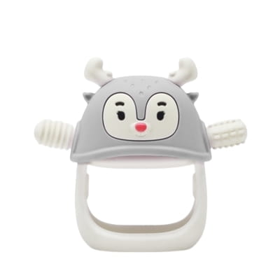 Konstrukcja Renifera jest podobna do konstrukcji Pingwina. To gryzak dla niemowląt, które dopiero uczą się chwytać przedmioty. Jego specjalnie zaprojektowana osłona zapobiega wypadaniu gryzaka z dłoni dziecka. Dzięki temu maluch skutecznie trenuje motorykę małą, a rodzic nie musi co chwilę sięgać po gryzak, by ponownie podać go dziecku, gdy ten upadnie. To wygodne rozwiązanie wykorzystywane jest przez terapeutów do ćwiczeń wzmacniających mięśnie oraz usprawniających koordynację ruchową dzieci ze szczególnymi potrzebami (takich jak wcześniaki, czy dzieci z osłabieniem mięśniowym). Zwłaszcza, że uroczy design gryzaka Smily Mia przykuwa uwagę malucha, zachęcając do ćwiczeń i zabawy. Gryzak silikonowy Renifer to także doskonały sposób na oduczenie dziecka ssania palców.