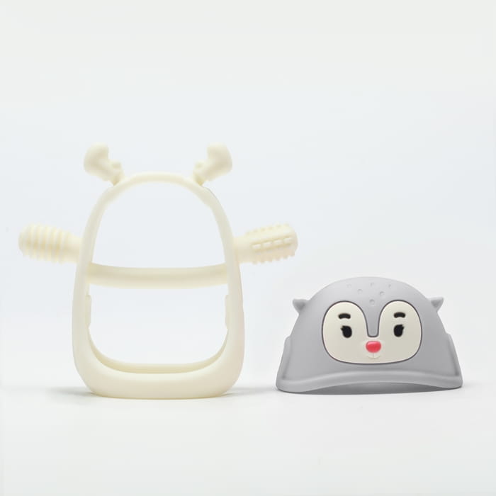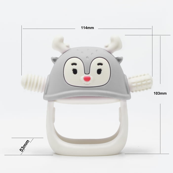 Wykonany z przyjemnego, miękkiego i bezpiecznego silikonu spożywczego gryzak dla niemowlaka Renifer został zaprojektowany na kształt piersi i sutka mamy. Na jego wypustkach znajdują się różne tekstury stymulujące dziąsła dziecka i łagodzące ból ząbkowania. Dodatkowo gryzak dla niemowlaka Smily Mia można chłodzić w zamrażarce, by wzmocnić jego kojące właściwości. To kolejny krok po gryzaku Pingwinie, którego wypustki były gładkie. Kiedy ból związany z ząbkowaniem nasila się, uspokajającego Pingwinka zamieniamy na masującego dziąsła Renifera.