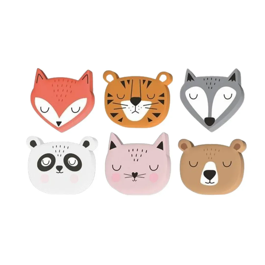 Każda gumka przedstawia sympatyczną buźkę zwierzaka z zamkniętymi oczkami – w kolekcji znajdują się m.in. lisek, tygrys, wilk, panda, kotek i miś. Ich bajkowy wygląd i pastelowe kolory w połączeniu z miękką fakturą sprawiają, że są idealne do małych dziecięcych rączek. To doskonały sposób na zachęcenie najmłodszych do nauki pisania i samodzielnego poprawiania błędów bez stresu.