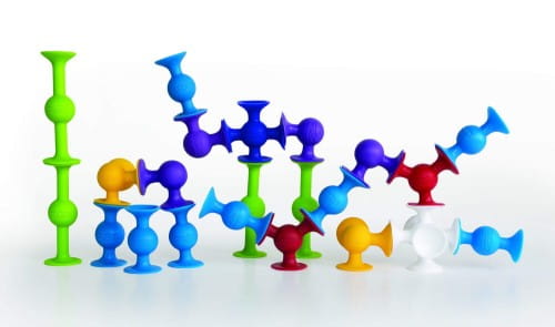 Przyssawki przyklejają się do siebie i do każdej gładkiej powierzchni. To nowy gatunek klocków. Wyginają się, przyklejają się, dyndają, wsysają w inny wymiar kreatywności.