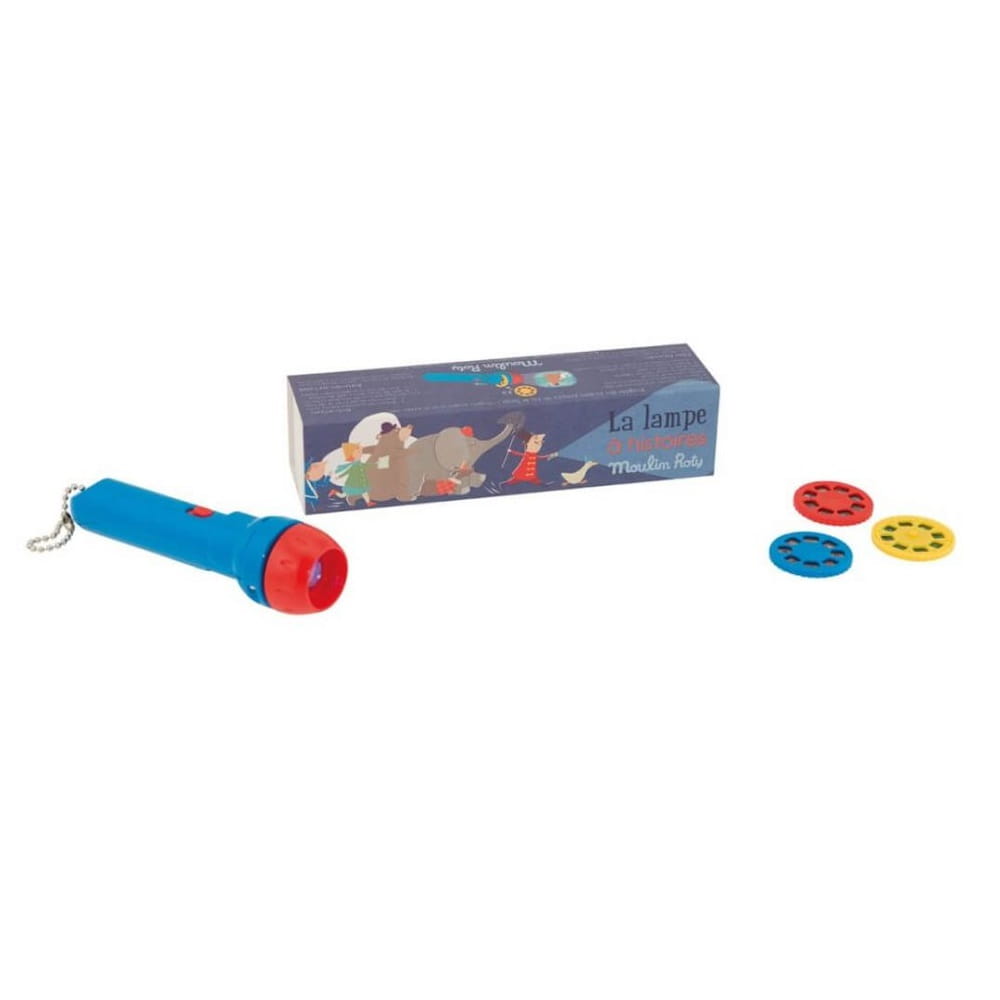 Projektor z historyjkami od Moulin Roty to świetna zabawa dla maluchów. Można opowiadać bajki na dobranoc, lub tworzyć własne historyjki bazując na obrazkach, które się wyświetlają.