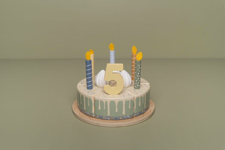 Urodzinowy torcik drewniany od Little Dutch to doskonały pomysł na zabawę. Wykonany z dobrej jakości drewna, w pięknych kolorach, malowany bezpiecznymi farbami dla dzieci. W skład tortu wchodzą: 6 kawałków tortu, 5 świeczek, 3 kuleczki bitej śmietany, 3 dekoracje w kształcie słodkości, 2 zwierzątka, łopatka do nakładania, cyferki. Kawałki w torcie można łączyć i rozdzielać dzięki rzepom. Torcik zapewni długie godziny zabawy.