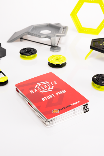 Ułóż elementy Toru Wyzwań według własnej wyobraźni lub skorzystaj z kart wyzwań, załaduj magnetyczny dysk Mag-Pod do wyrzutni, naciągnij dysk palcem, wyceluj i wystrzel! A teraz patrz jak twój dysk odbija się, koziołkuje, zderza, lata i ślizga się przez tunel – to prawdziwy spektakl fizyki! Połącz MagShuto Tor Wyzwań z innymi zestawami MagShuto, aby stworzyć jeszcze bardziej niesamowite tricki!
