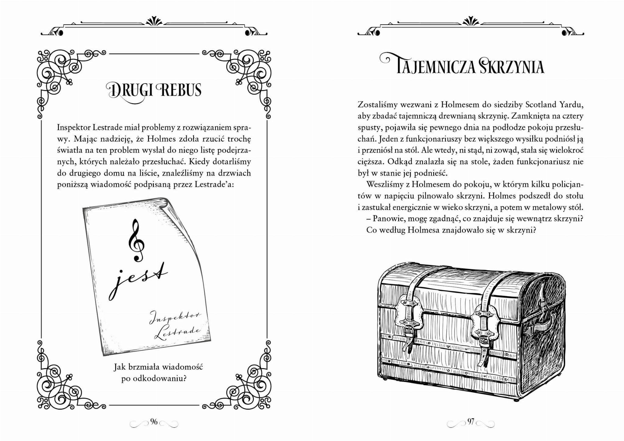 W towarzystwie doktora Johna Watsona, prawej ręki najwybitniejszego detektywa świata, spróbuj rozwikłać szereg osobliwie zagmatwanych zagadek, słownych szarad i matematycznych łamigłówek, wymyślonych dla Ciebie przez samego Holmesa. Zadania przeplatają się z dwoma opowiadaniami należącymi do klasycznej serii przygód Sherlocka Holmesa, „Sprawa dziedziców z Reigate” oraz „Rytuał Musgrave’ów”, które Arthur Conan Doyle uważał za jedne z najlepszych w swoim dorobku. Obserwując mistrza dedukcji przy pracy, spróbuj zastosować reguły logiki i rozwiązywać kolejne fascynujące problemy. Czas rozpocząć przygodę!
