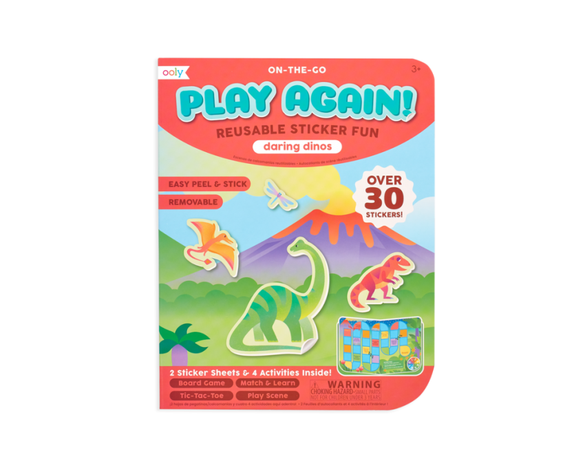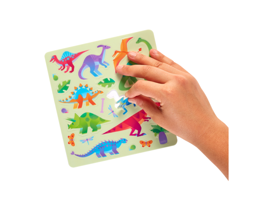 Niezależnie od tego, czy jesteś w podróży, czy w domu, te naklejki wielokrotnego użytku zajmą Twoje dziecko na długie godziny! Wspaniała zabawa z wesołymi dinozaurami i wyścigówkami bez bałaganu. W dodatku można ją zabrać ze sobą, gdzie się chce! W zestawie znajdują się silikonowe naklejki, które można wielokrotnie naklejać i odklejać, sześciostronicowa książeczka do zabawy, plansza do gry z kołem obrotowym, plansza „dopasuj i ucz się” oraz „kółko i krzyżyk”.