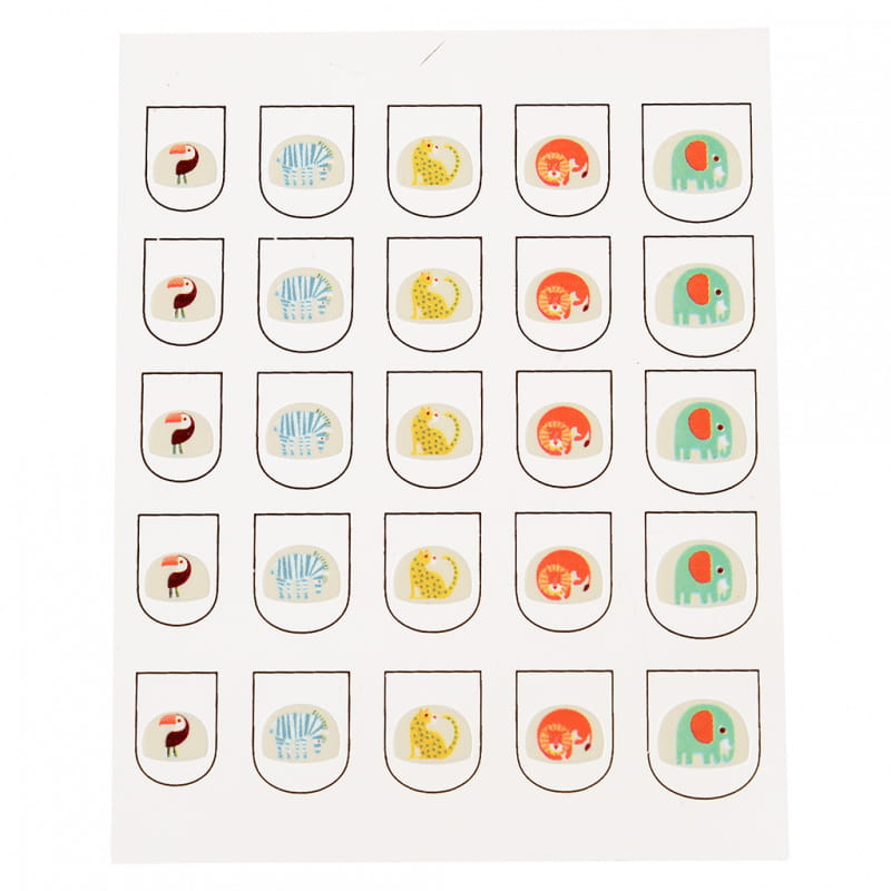 - materiał: klej, karta, plastik wymiary naklejki: 0,5 cm x 0,8 cm x 0,1 cm;