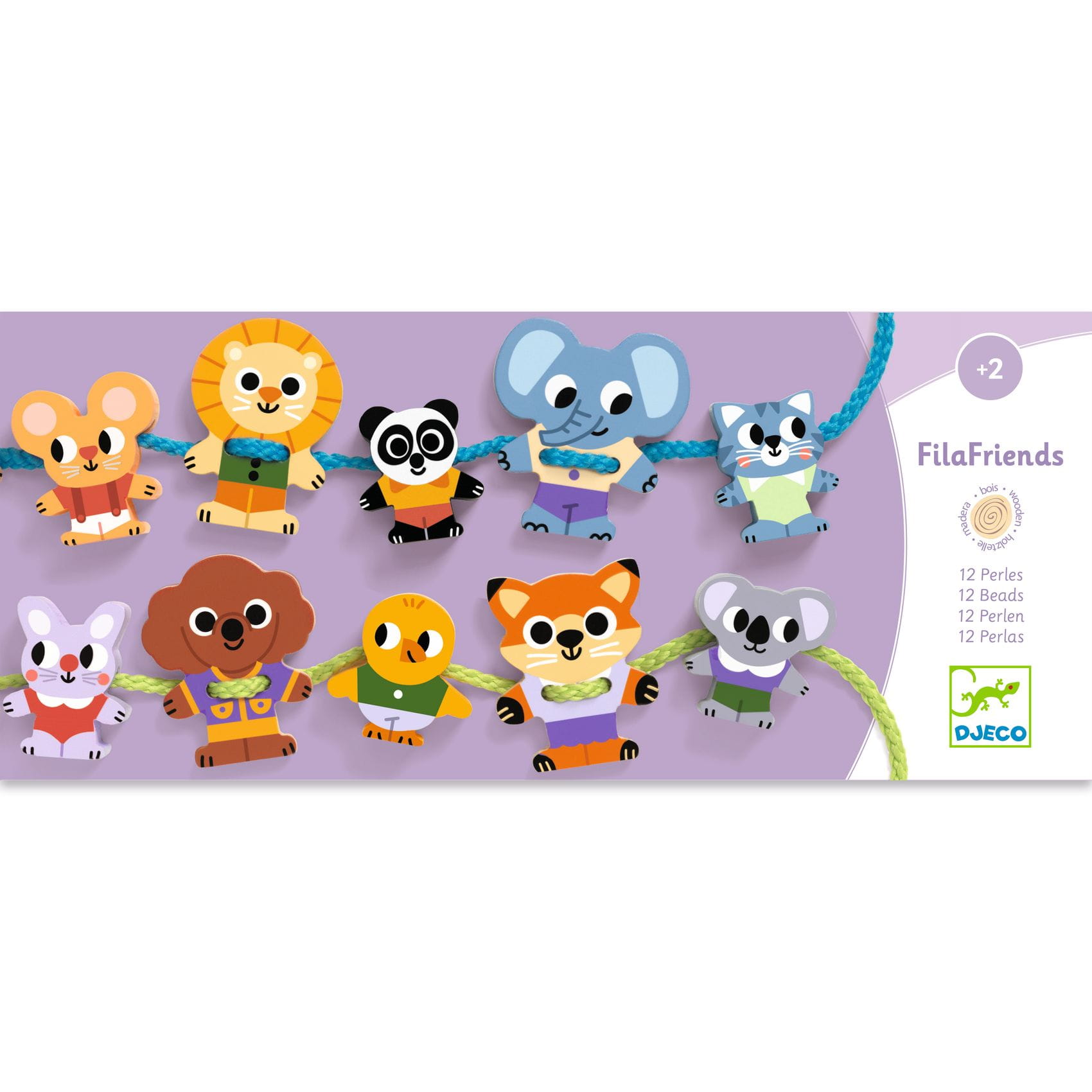 Świetna manualna zabawa dla dzieci już od 2. roku życia. Zadanie polega na nawlekaniu dużych koralików w kształcie zwierząt na sznurki, które należy również związać. Elementy są wykonane z drewna posiadającego certyfikat FSC®.