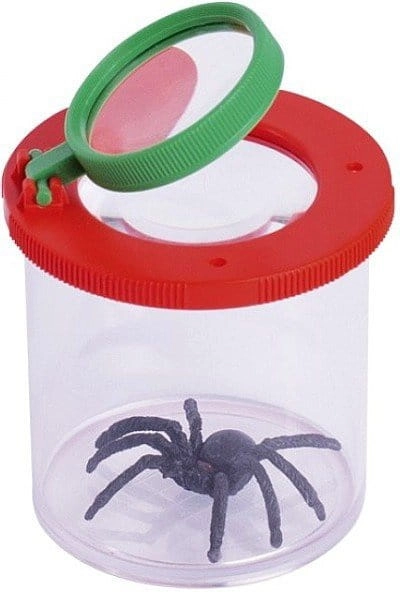 Plastikowy pojemnik na pająki ze szkłem powiększającym. Po obejrzeniu pająka należy wypuścić go na wolność.
