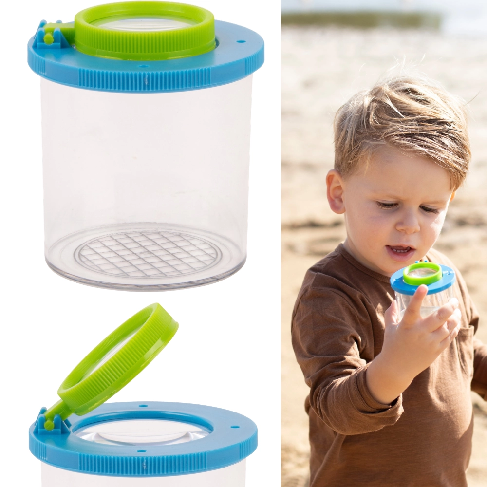 ✔ Przezroczysty kubeczek z powiększającą soczewką – umożliwia bliższe obserwacje natury