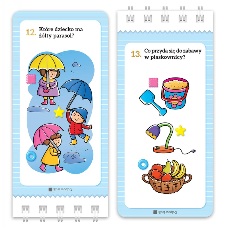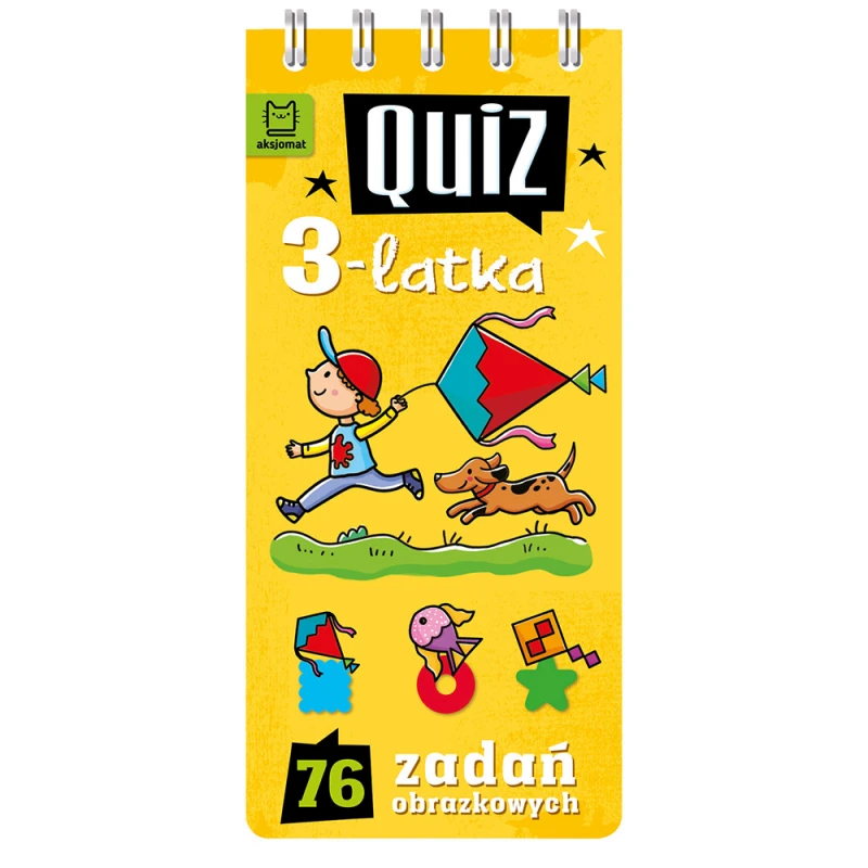 Quiz 3-latka to zestaw 76 obrazkowych zadań dla bystrych dzieci. Taki test to doskonałe narzędzie sprawdzenia wiedzy najmłodszych oraz sposób na edukacyjną zabawę. Książeczka sprawdzi się na spacerze – do korzystania przez dziecko w wózku – w podróży, a przede wszystkim do pracy w domu. Sprawdź wiedzę swojego dziecka i zapewnij mu kształcącą zabawę!