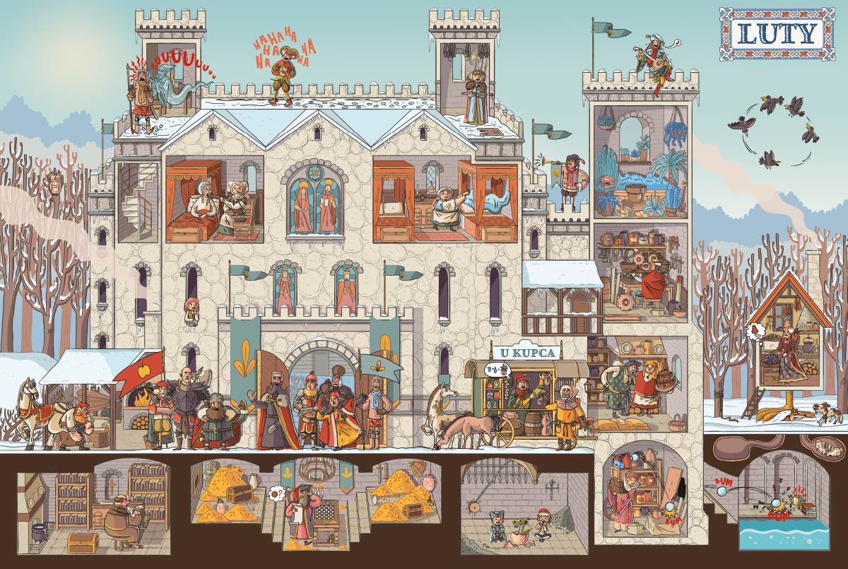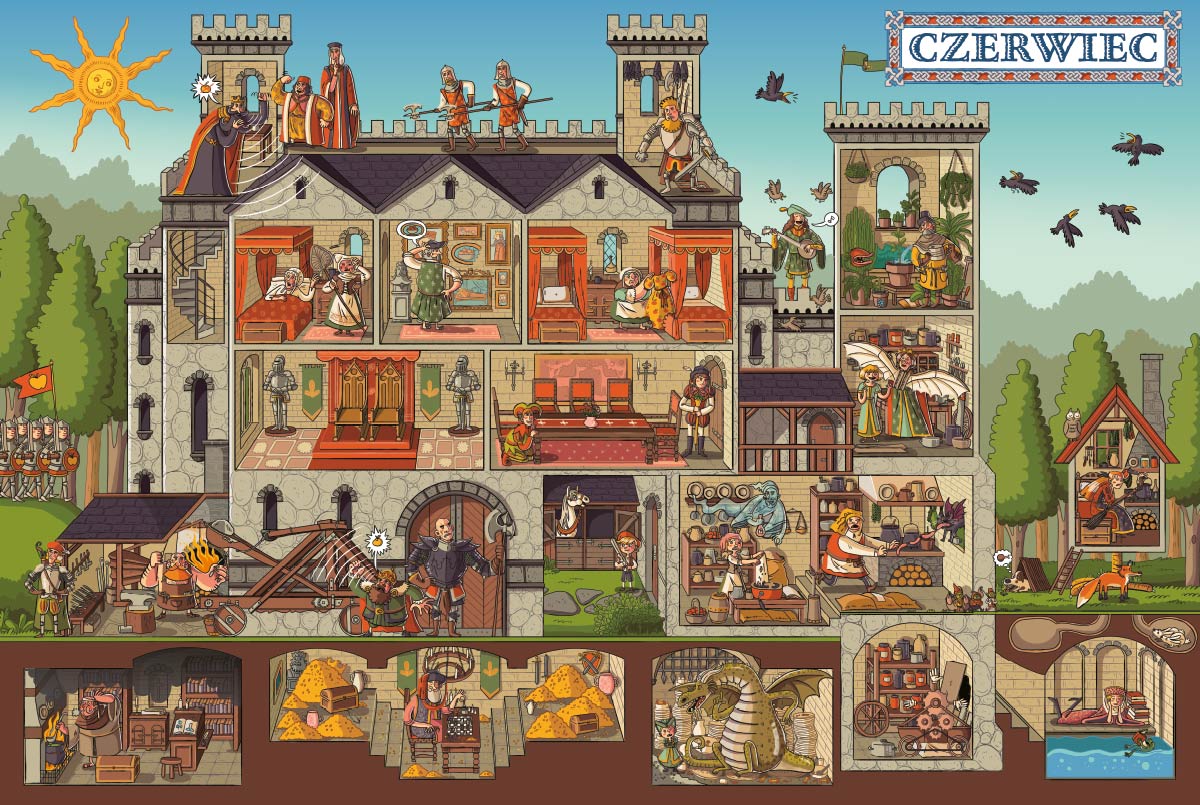Witajcie na zamku króla Bolebora i królowej Drogomiry! Spędzicie na nim cały rok. Będzie się dużo działo. Poznacie wielu jego mieszkańców: królewskie córki, szukającego miłości barda, samotnego ducha, mnicha Bławatka, płatającego figle błazna Dzwonka, wiecznie kłócących się królewskich doradców i wielu, wielu innych. Dowiecie się, jak przez przypadek można doprowadzić do wojny, kto burzy spokój królewskiego skarbnika, czy królewnie Samboi uda się zostać rycerką oraz do czego mogą się przydać wynalazki królowej i rośliny hodowane przez ogrodnika Wacława. Zapraszamy na zamek, gdzie przeżyjecie fantastyczne przygody!