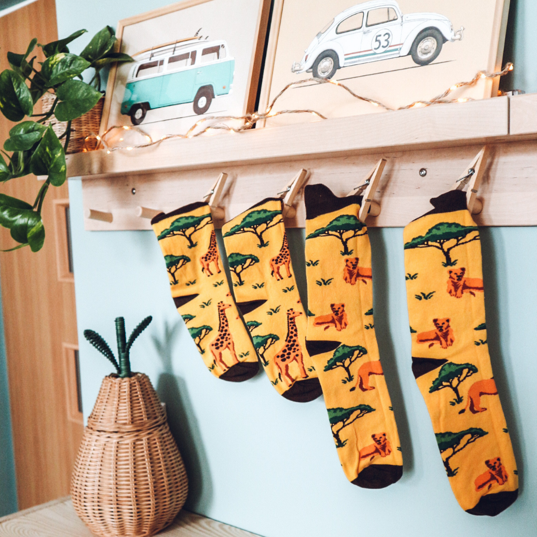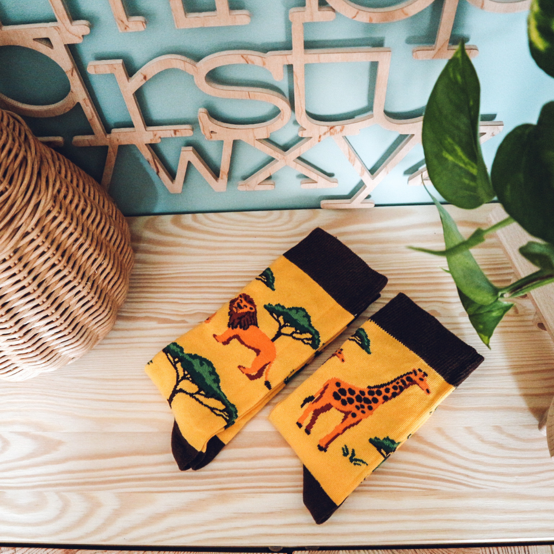 Dorosłe skarpety w rozmiarze 36-41 z kolekcji Kenijskiej w Żyrafy