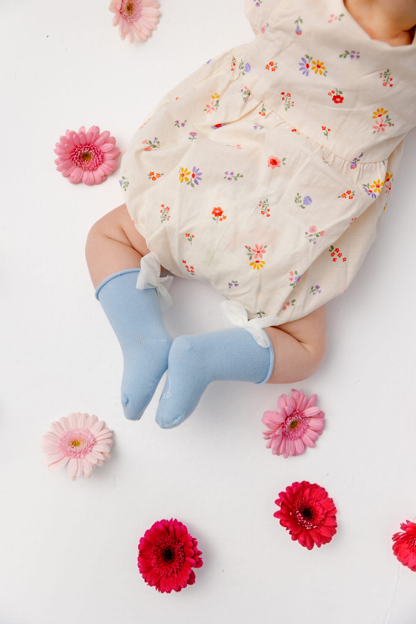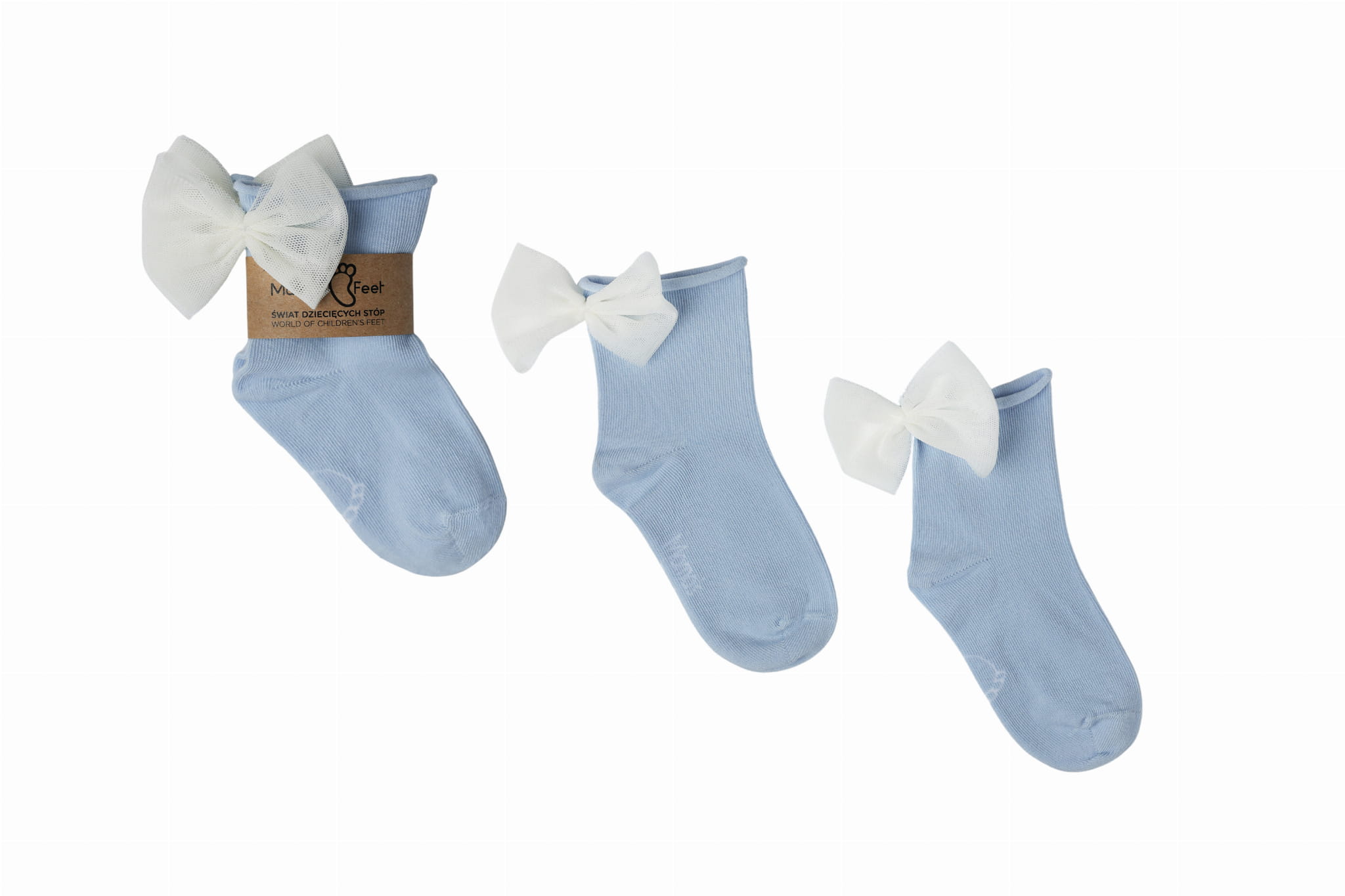 Flora to kolekcja pięciu wiosennych skarpetek w wyrazistych kolorach uzupełnionych subtelną, białą kokardką z tiulu.