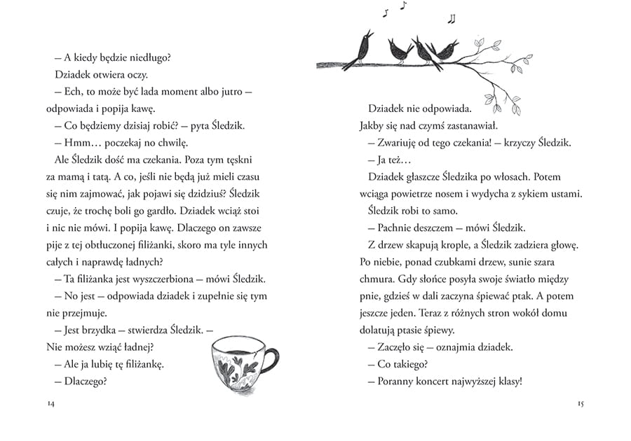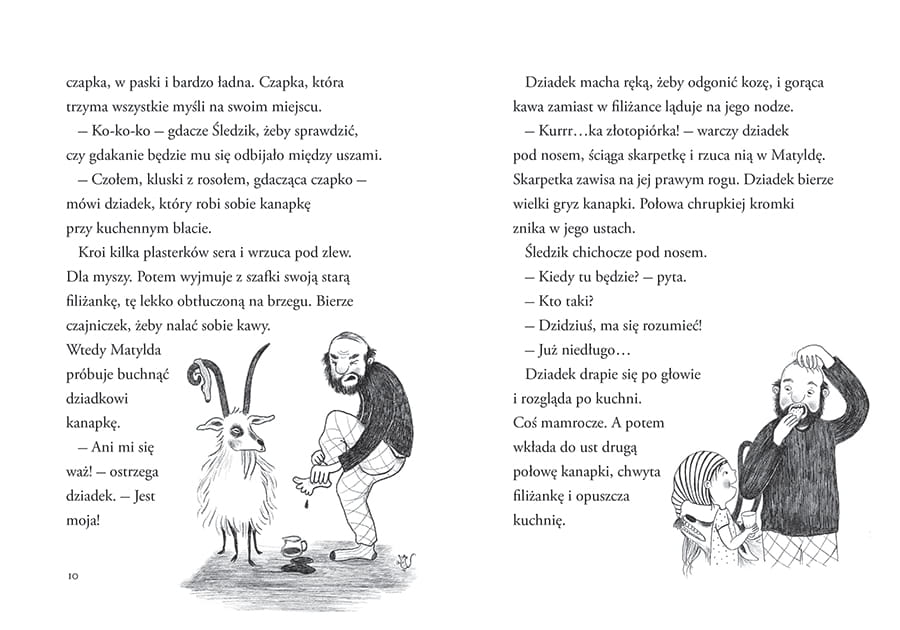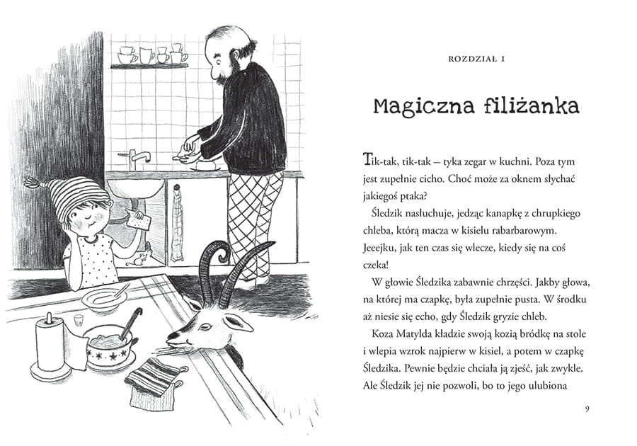 Jest wczesny ranek i zapowiada się strasznie długi dzień. Śledzik chwilowo mieszka u dziadka, a towarzystwa dotrzymuje im koza Matylda. Czekają, aż mama z tatą wrócą ze szpitala. Bo Śledzik będzie miał rodzeństwo. Ale wygląda na to, że dzidziusiowi się nie spieszy. Trzeba więc wypełnić czymś czas i przegonić niepokój. Już za chwilę nic nie będzie tak jak dawniej. Tylko jak?
