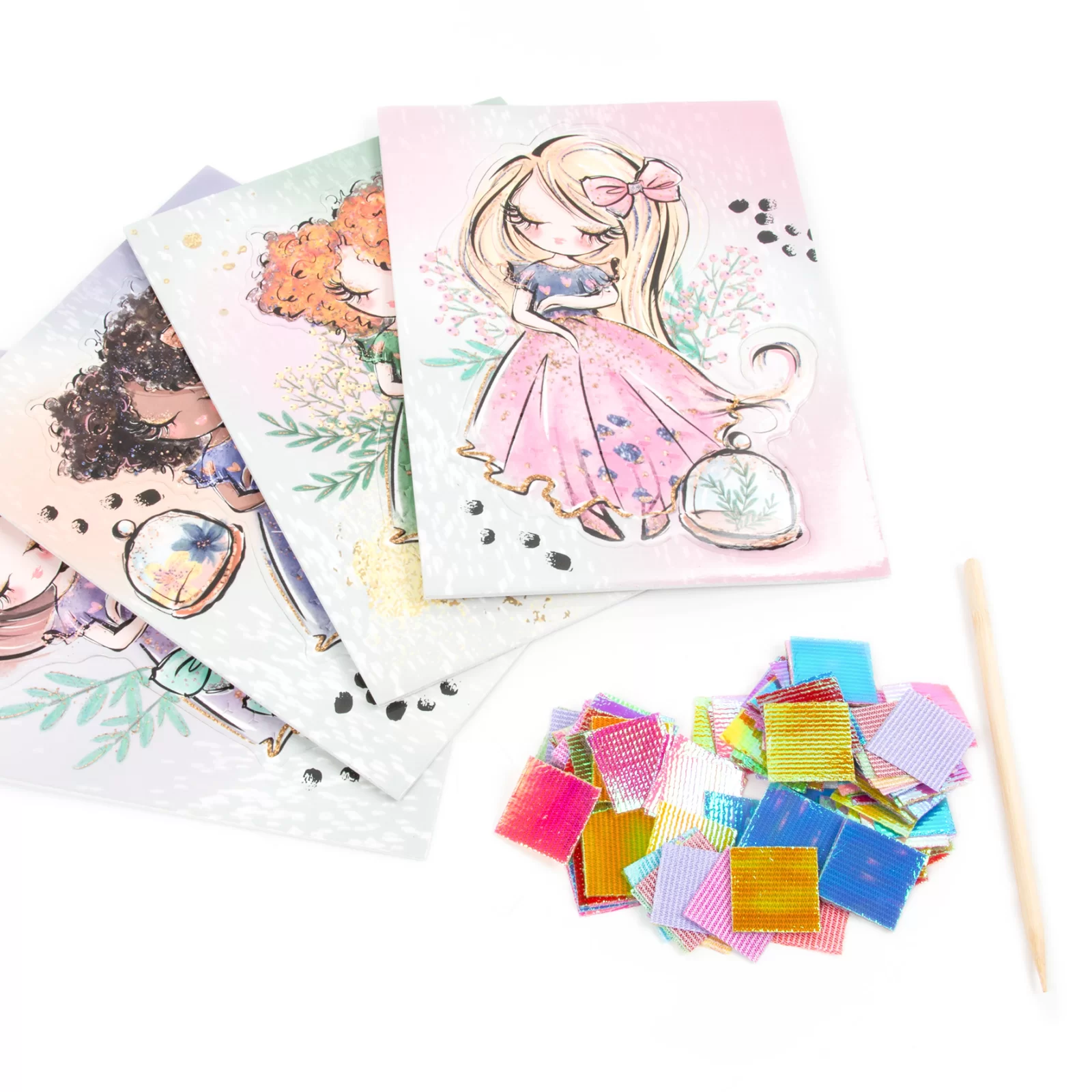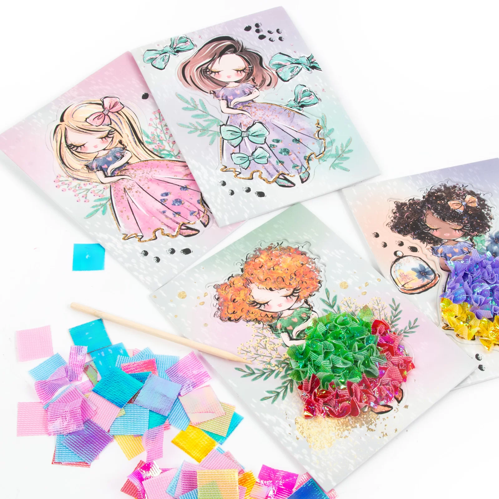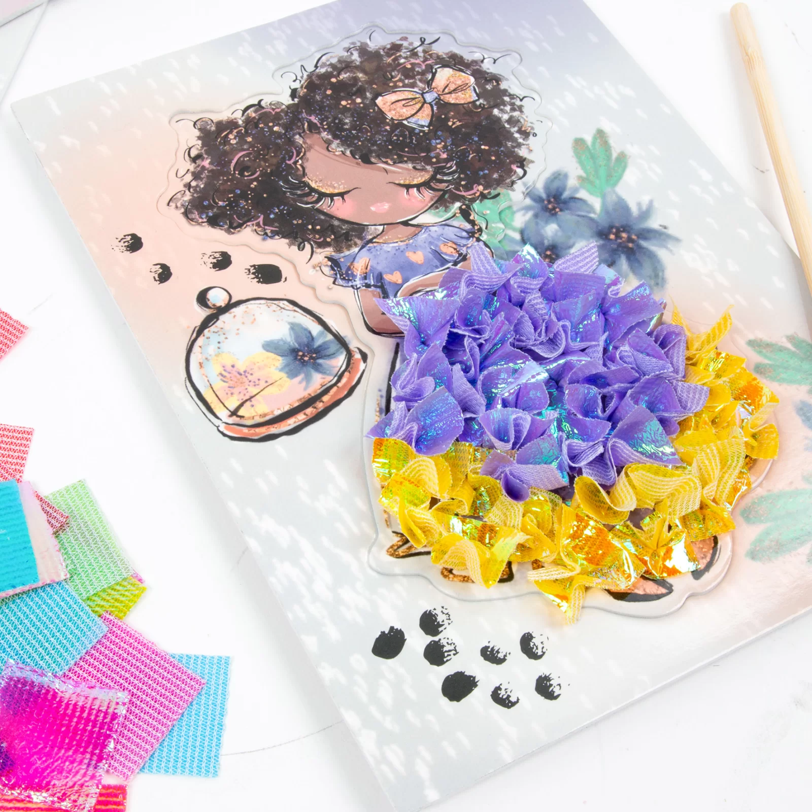 Świat mody stoi otworem przed małymi projektantkami dzięki kreatywnej zabawie Stylistka od Kidea. W opakowaniu znajdują się cztery szablony z dużymi naklejkami z księżniczkami, drewniany patyczek oraz metaliczne kawałki materiału w różnych kolorach. Aby ubrać księżniczki w błyszczące kreacje wystarczy wcisnąć kawałki materiału w miejsca oznaczone krzyżykiem i gotowe! Zestawiając ze sobą różne kolory materiałów można tworzyć wielobarwne kreacje lub postawić na bardziej stonowane, jednolite stylizacje. Kiedy stworzony strój już się znudzi wystarczy wyjąć skrawki materiału z otworów i zacząć zabawę na nowo! Wystylizowane księżniczki można wyjąć z szablonu i przykleić lub bawić się nimi tworząc niesamowite historie.