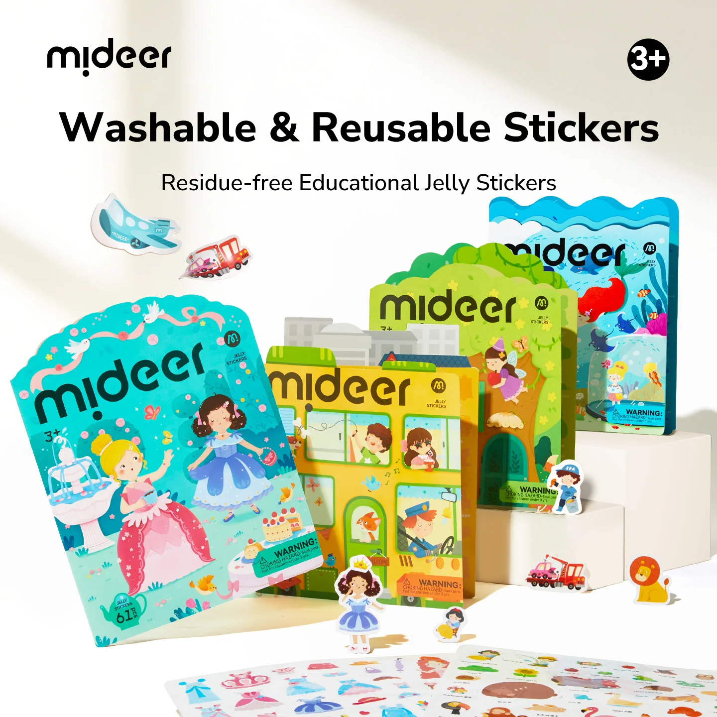 Żelowe naklejki wielorazowe mideer – Zwierzęta (38 szt.)