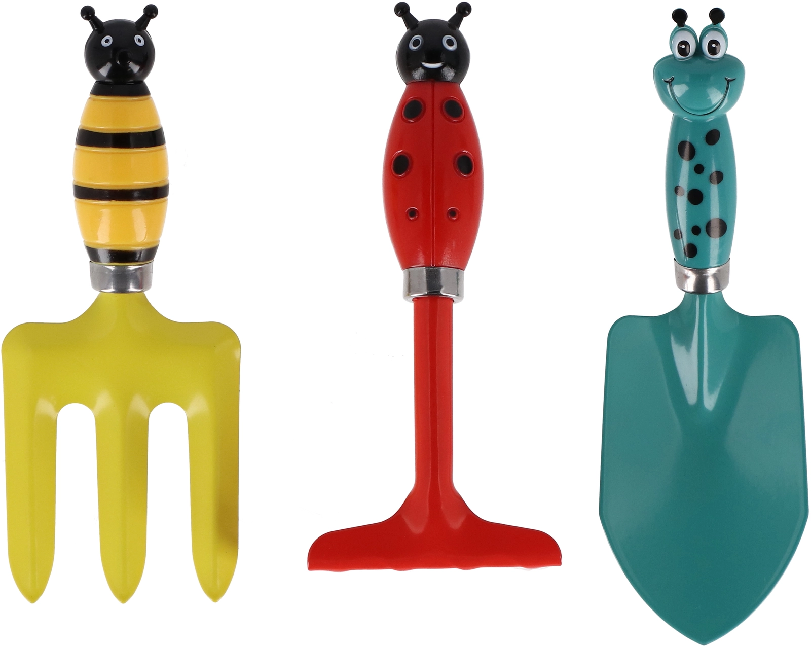 Zestaw Narzędzi Ogrodowych 3 szt. dla dzieci – Łopatka, Grabki, Widły – Motyw Owadów