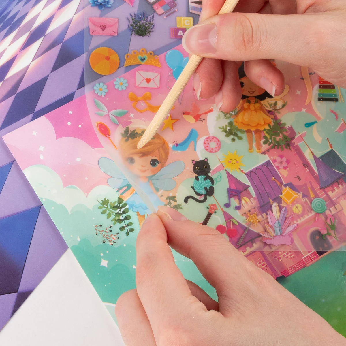 Zawiera 3 tła do wyklejania, drewnianą szpatułkę oraz 4 arkusze z motywem wróżek.