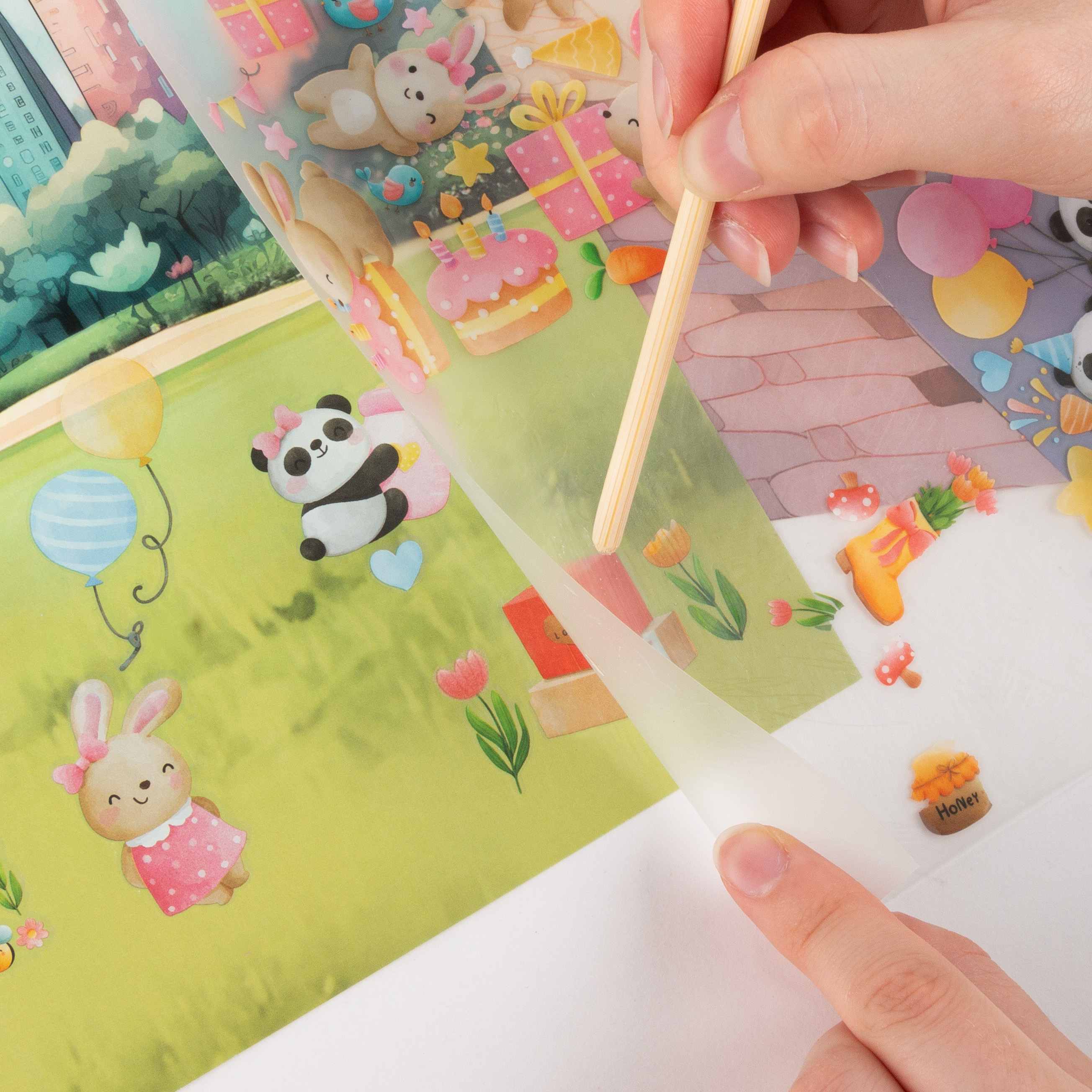 Wystarczy przyłożyć wybraną folię z kalkomanią do arkusza z tłem i potrzeć obrazek drewnianym rysikiem.