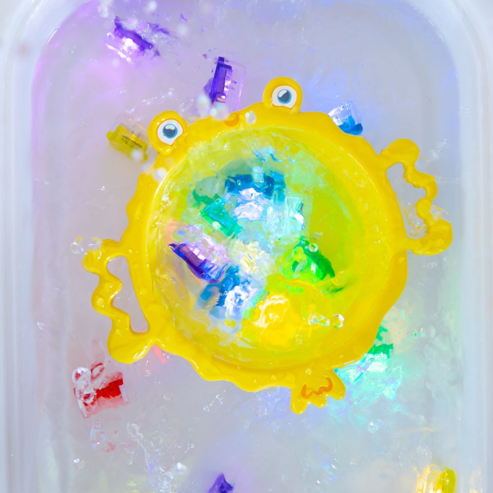 Zabawka będzie świetnym uzupełnieniem do innych zabawek marki Glo Pals jak słoiki sensoryczne czy świecące w wodzie kostki.