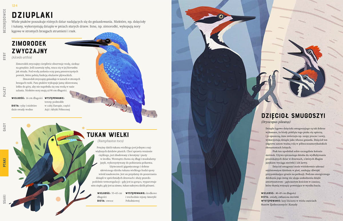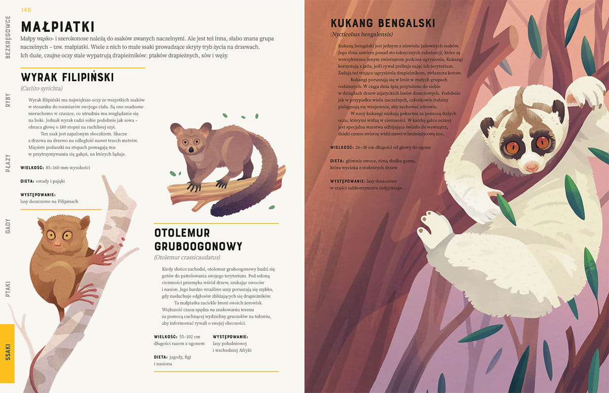 Wszystkie hasła są wspaniale zilustrowane, a krótkie teksty obejmują zwięzłą charakterystykę każdego gatunku, w tym niezwykle ciekawe, często mało znane informacje dotyczące biologii, zachowań, preferencji pokarmowych i miejsca występowania.